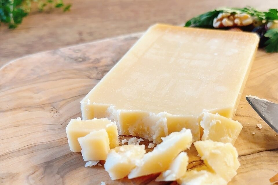 「チーズの王様」とも呼ばれるハードチーズで、最低12か月以上熟成させて作られます。ナッツのような香ばしさとコクがあり、パスタやリゾットに削って使われるほか、そのままワインと合わせても絶品です。