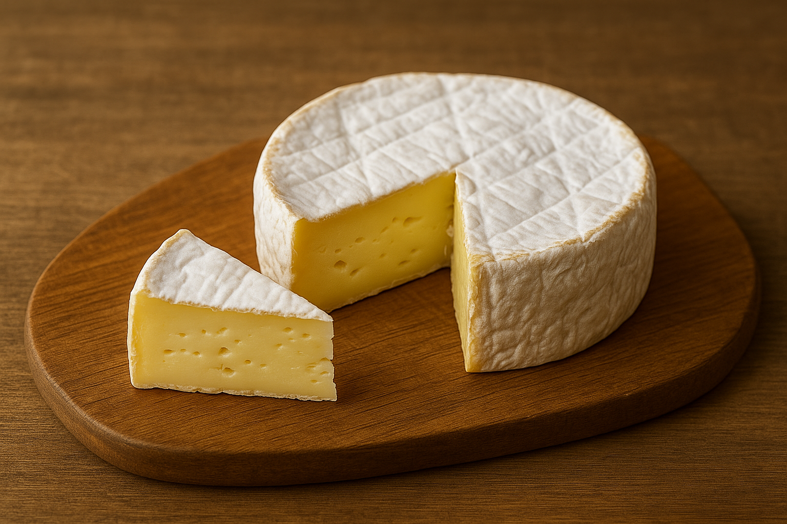 白カビチーズの代表格であるカマンベールは、フランス・ノルマンディー地方発祥のチーズです。外側は白カビに覆われ、中はとろりとした柔らかい食感が特徴。クセが少なく食べやすいため、世界中で人気があります。