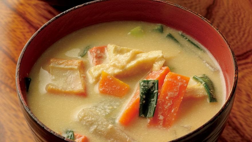 酒粕料理といえば、もっとも代表的なのが「かす汁」です。大根、にんじん、ごぼう、こんにゃくなどの野菜に、鮭や豚肉などを加え、酒粕で仕立てた汁物は、香り高くコクがあり、寒い季節にぴったりの一品です。地域によって具材や味付けは異なり、関西では鮭、北陸では塩鱈を使うなど、多彩なバリエーションがあります。