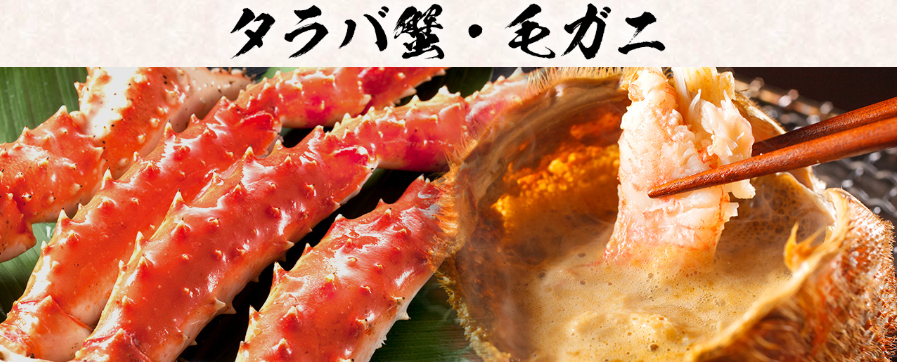 ずわい蟹だけではありません。タラバ蟹・毛ガニもラインナップ。タラバ蟹はずわい蟹よりも身が太く食べ応え抜群。毛ガニは毛ガニでしか味わえない濃厚な蟹味噌が絶品です!