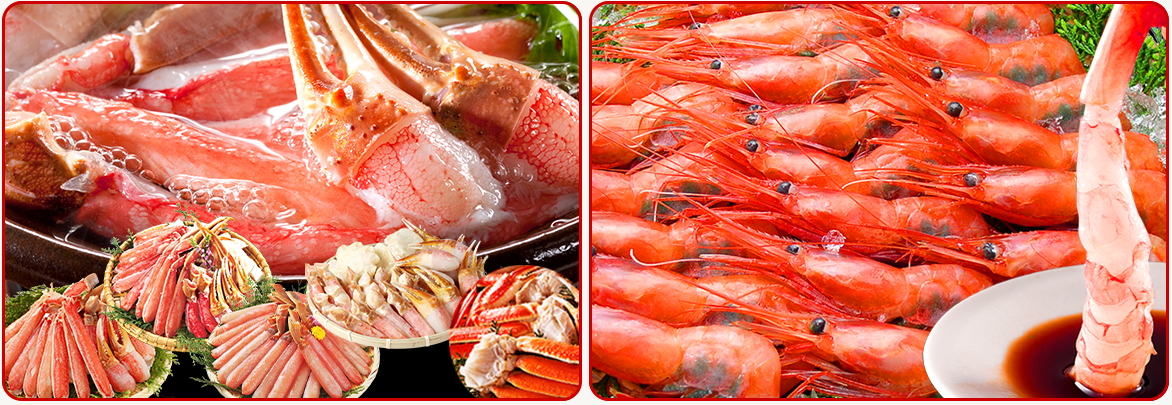 ますよねイチオシの厳選商品「カニ」はもちろんのこと、日本海産 子持ち甘えびも超おすすめ。鮮度によって生まれる、舌に絡みつく「とろみ」と独特の「甘み」が絶品です。お刺身で食べて頭はサッと焼いて味噌汁にすると、贅沢な一品となります。