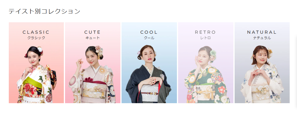振袖から小物まで、充実した品揃えは業界トップクラス。美しさが際立つ高品質な特選技法振袖から、トレンド柄、リーズナブルなレンタルまで、ニーズに合った振袖を豊富に取り揃えています。小物1点からの購入も可能です。