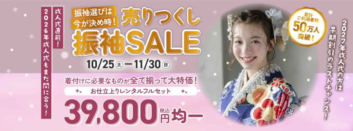 2.成人式の振袖返却後、京都きもの友禅の振袖が何度でも50%OFFでレンタルできる。
