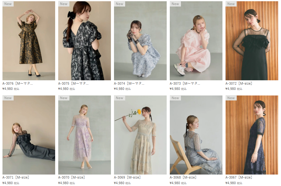 Sサイズから4Lサイズまで、幅広いサイズ展開も魅力の一つ。マタニティ対応のドレスも充実しているため、妊娠中の方でも安心しておしゃれを楽しめます。