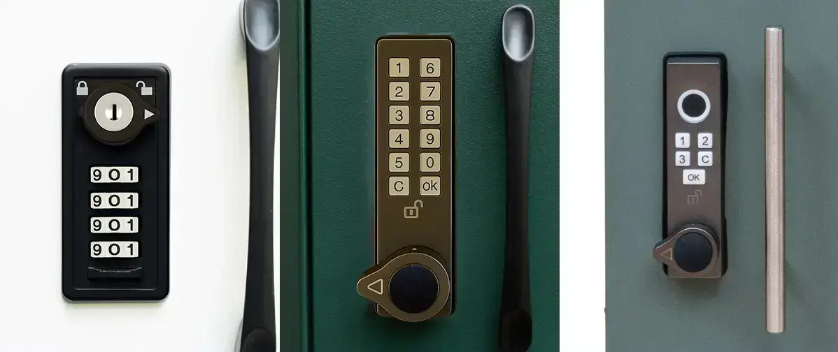 配送業者様は荷物を入れた後、ワンタッチで施錠が可能。開錠には専用のキー(または暗証番号設定)が必要となるため、第三者に荷物を持ち去られる心配がありません。