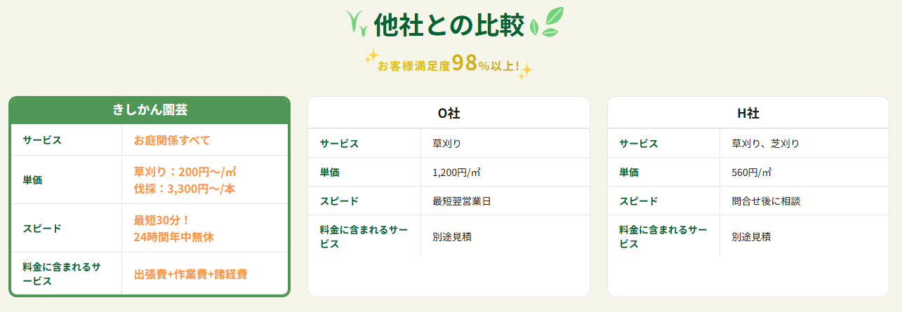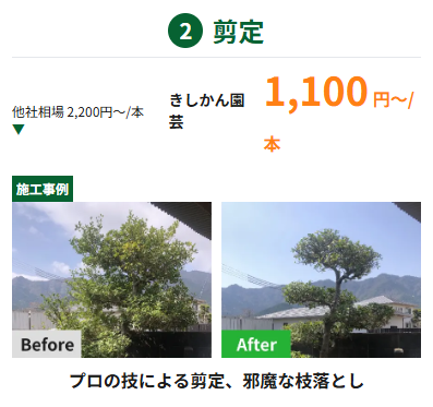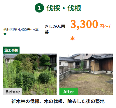 そんなお悩みを解決するため、私たち「きしかん園芸」は、「伐採・剪定・除草の業界最安値に挑戦」を掲げ、高品質なサービスを適正価格で提供しています。この紹介文では、きしかん園芸が選ばれる理由、サービスの特徴、そしてお客様が得られるメリットを詳しくご紹介します。購入(ご依頼)を検討されているお客様は、ぜひ最後までお読みください。