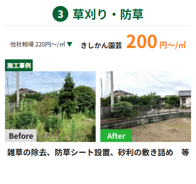 - 除草:見た目の改善はもちろん、雑草の生育を抑えるための対策もご提案します。