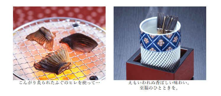 炙って熱燗に入れるだけで、香ばしい風味が楽しめるひれ酒。これもセットに含まれているため、自宅でふぐ料理のフルコースを完璧に再現できます。料亭の雰囲気を味わえる至福の一杯です。
